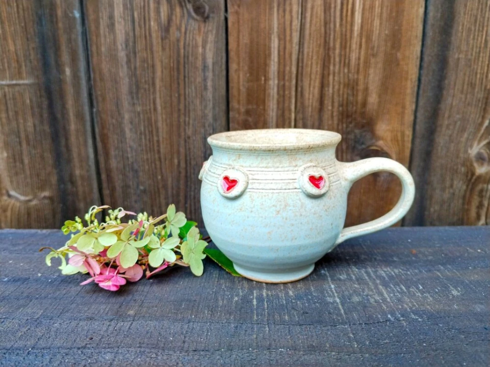 Baculatý hrneček s plastickými srdíčky – ideální na kávu!