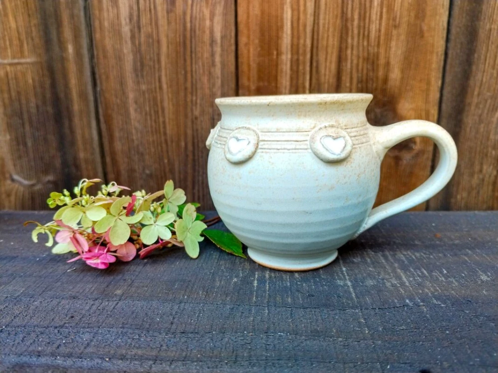 Baculatý hrneček s plastickými srdíčky – ideální na kávu!