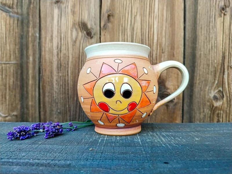 Každý hrnek je ručně točený na hrnčířském kruhu a zdobený originálním obrázkem malovaným glazurami. Díky této pečlivé ruční práci je každý kus opravdovým originálem, který vnese do vaší kuchyně osobité kouzlo.