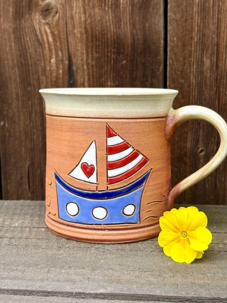 Uvnitř glazováno béžovou glazurou, zvenku režný povrch, aby na něm vynikl barevný obrázek, ručně MALOVANÝ GLAZURAMI = proto můžete hrneček bez obav umývat v myčce a barvy vydrží! Nesmyjí se!!!!