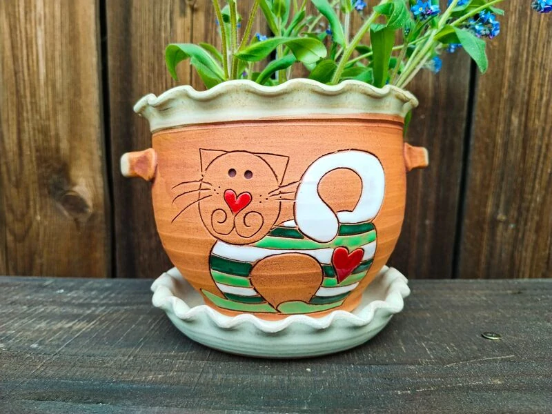 KVĚTINÁČ s podmiskou KOČKA ZELENÁNení skladem450 Kč/ ks