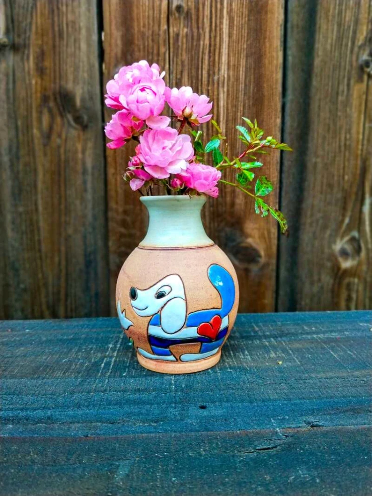Ručně vyráběná keramická vázička s malovaným dekorem